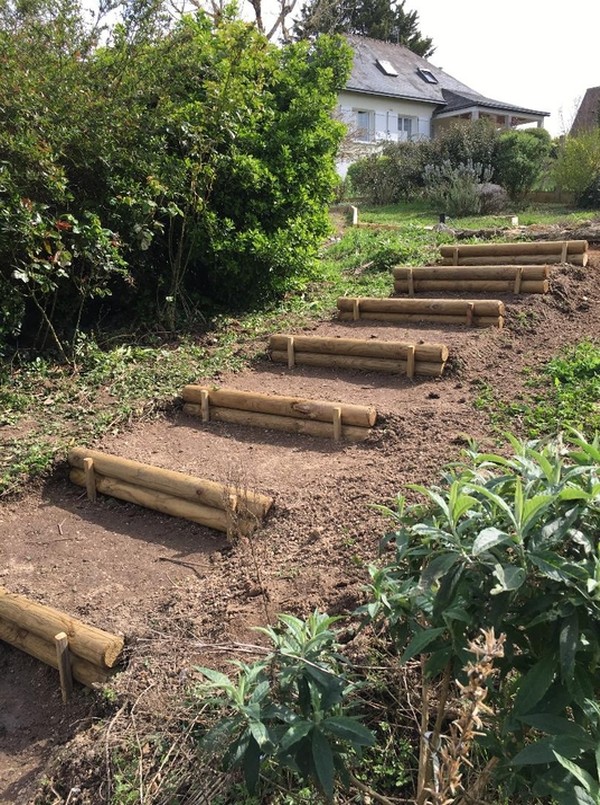 avec des rondins et des piquets